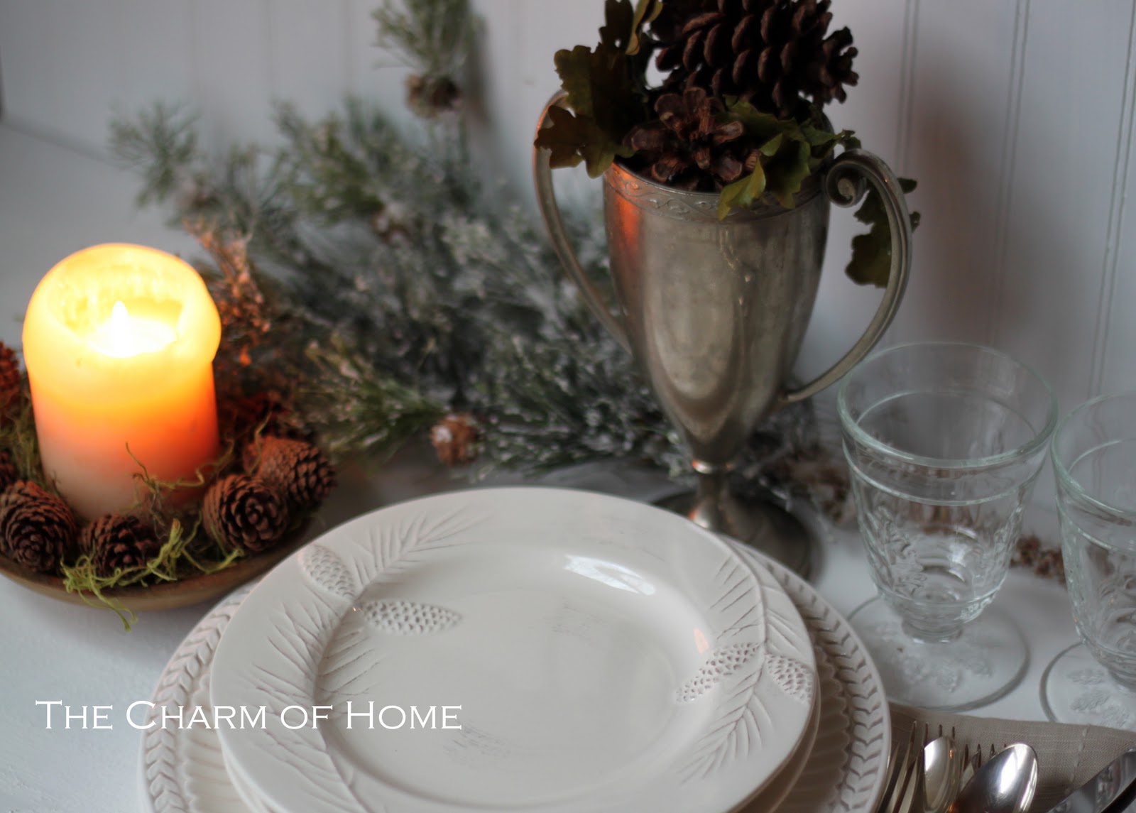 i love your pinecone dishes, they are so subtle. i bought a set with pinecones on mega clearance last year, and though the colors look subtle on the outside of the box, once home i found they were much less so. oh well. for the price, i can't beat it. i have to do a tablescape with them already.